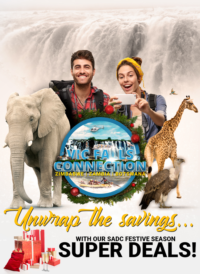 2 x dinners at MaKuwa-Kuwa Restaurant (Table d’hôte Menu) or 2 x dinners at Victoria Falls Safari Club (exclusive to Victoria Falls Safari Club guests)